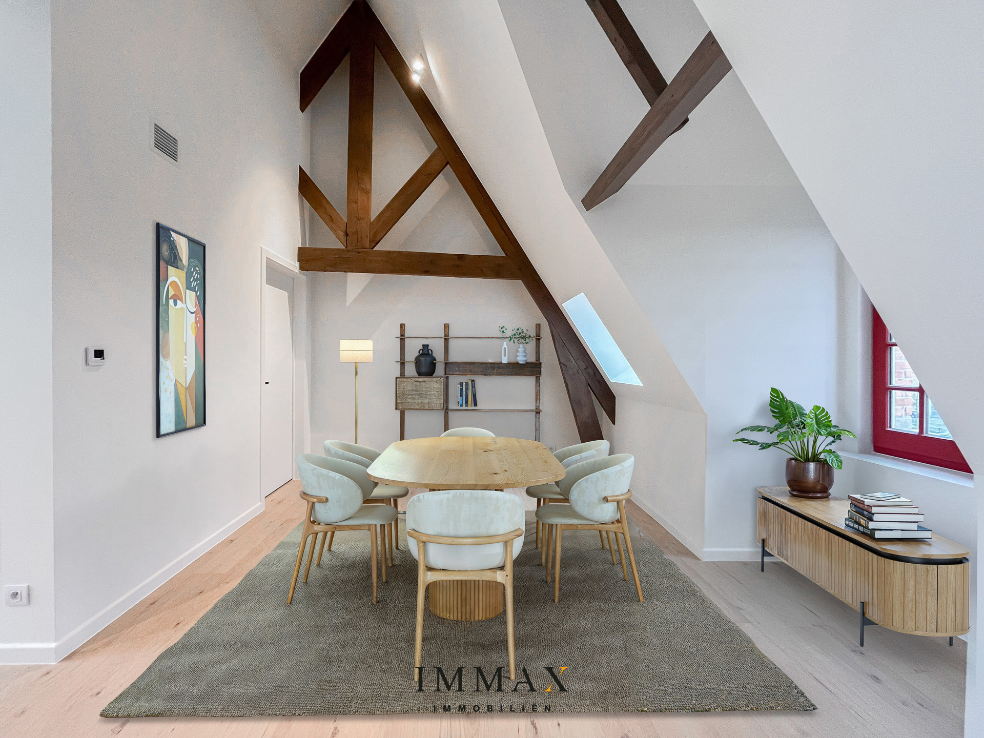 Depuis l'espace de vie, vous avez accès à la terrasse (29,10 m²) qui donne sur le jardin intérieur.