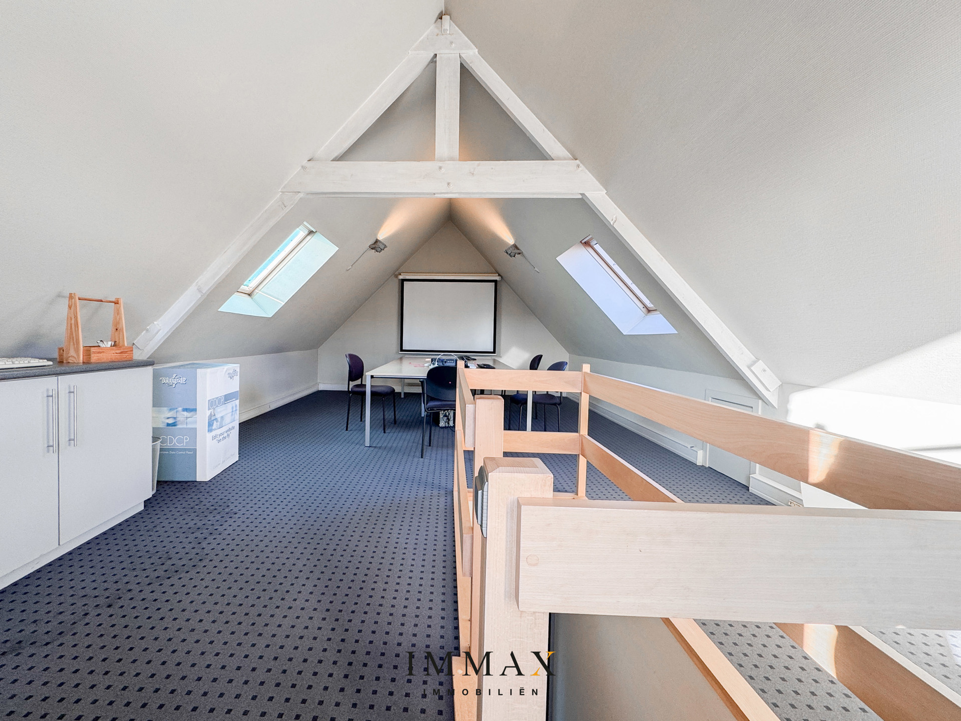 - ruime vergaderzaal bereikbaar via trap (67,76m² - op zolderverdieping)