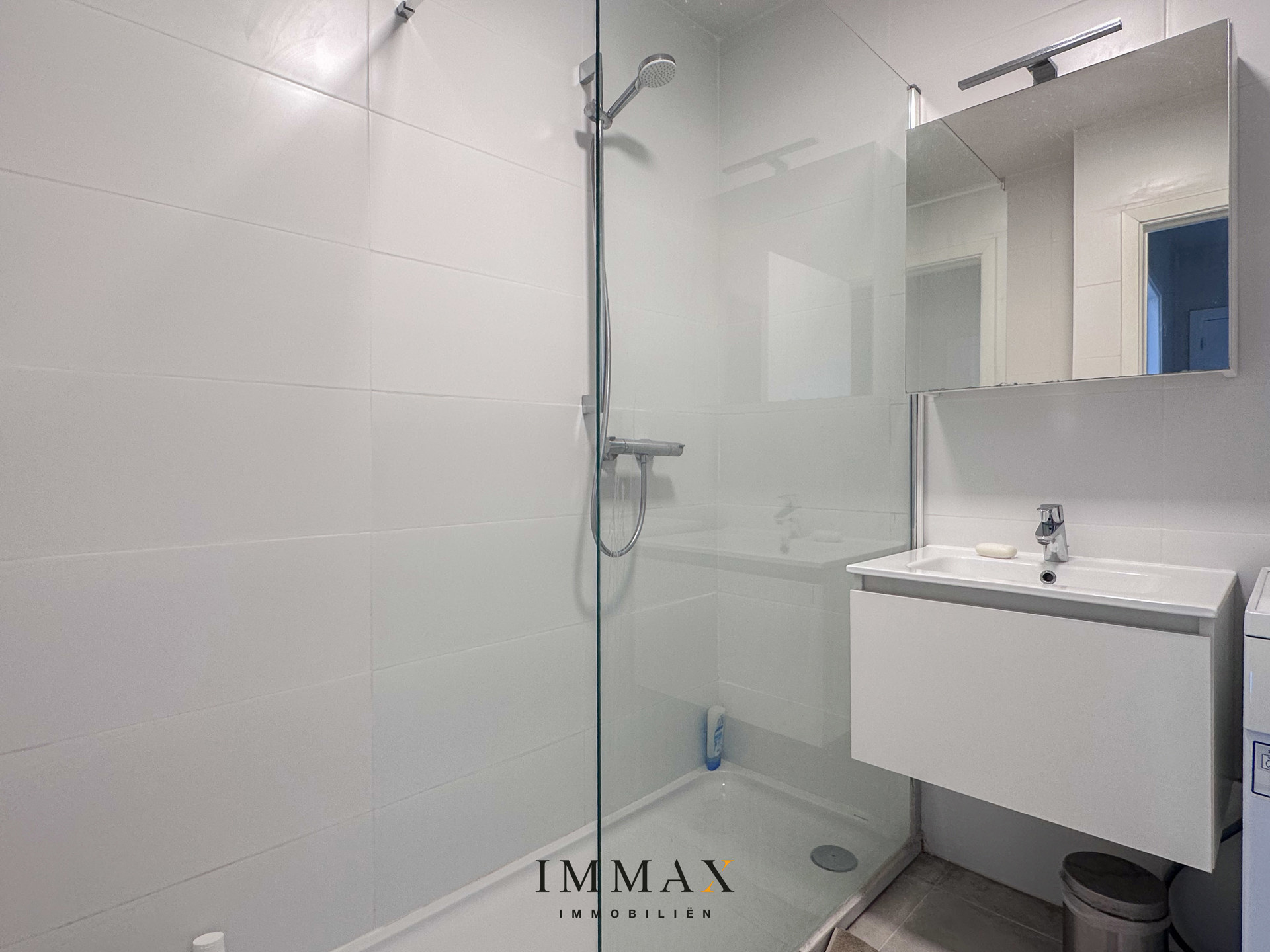 L'appartement dispose également de deux chambres à coucher spacieuses qui offrent de nombreuses possibilités. La salle de bains est équipée d'une douche à l'italienne moderne, d'un lavabo et d'un raccordement pour une machine à laver. Il y a également des toilettes séparées pour les invités.