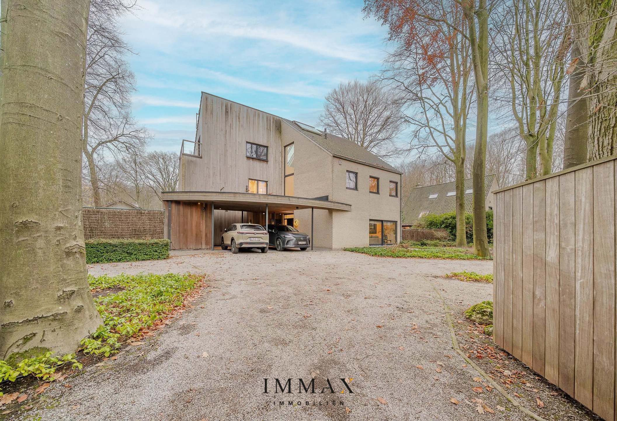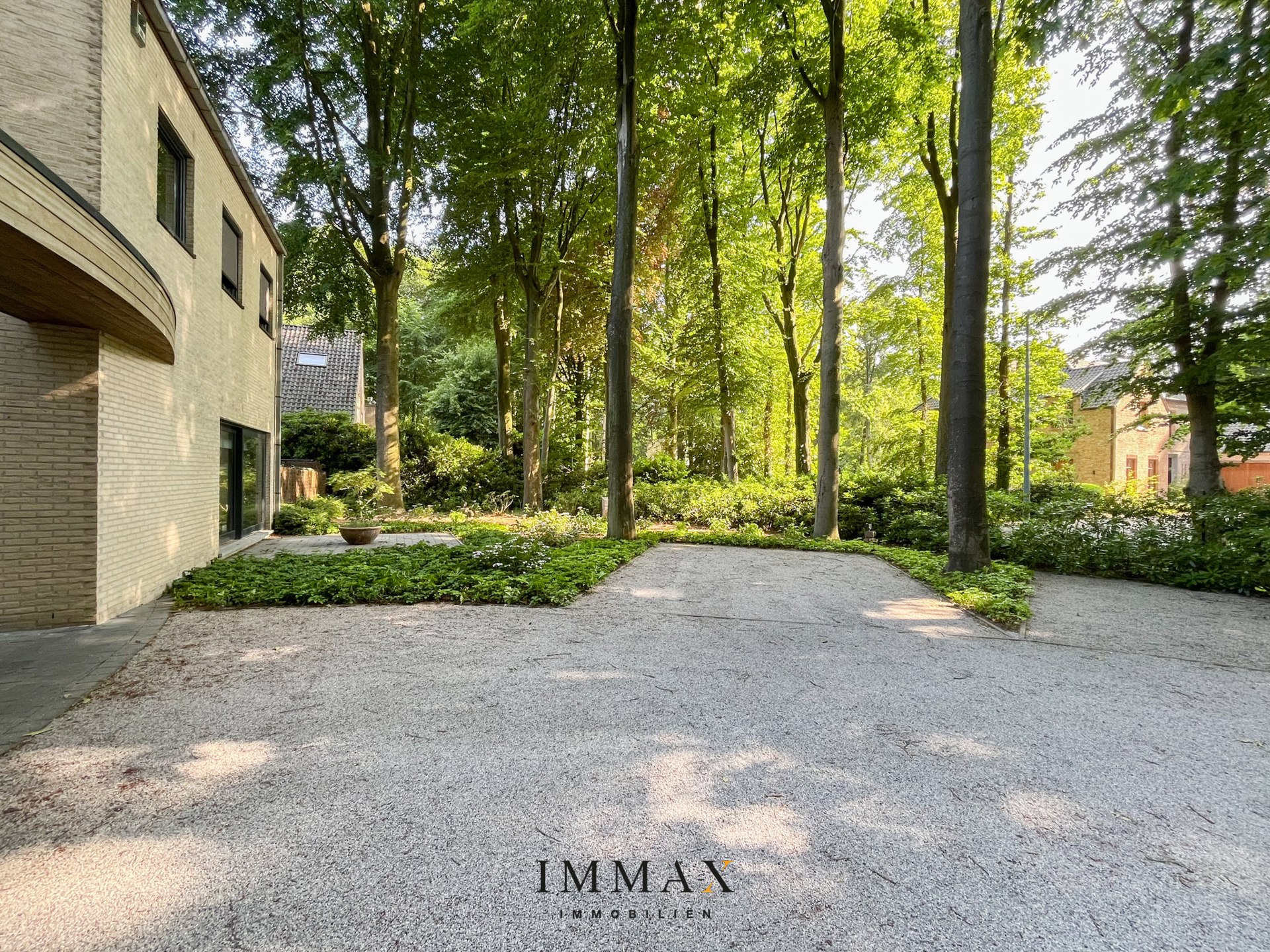 De buitenruimte biedt 5 parkeerplaatsen met oplaadpunt voor elektrische auto's. Omgeven door meerdere terrassen rondom het huis, biedt de tuin een rustige en serene setting, ideaal om in alle privacy van het buitenleven te genieten.