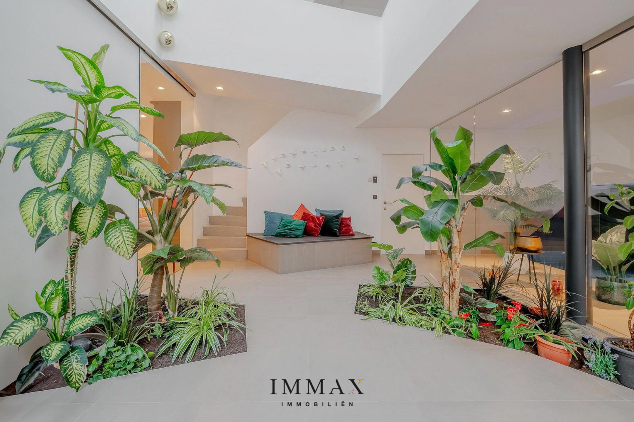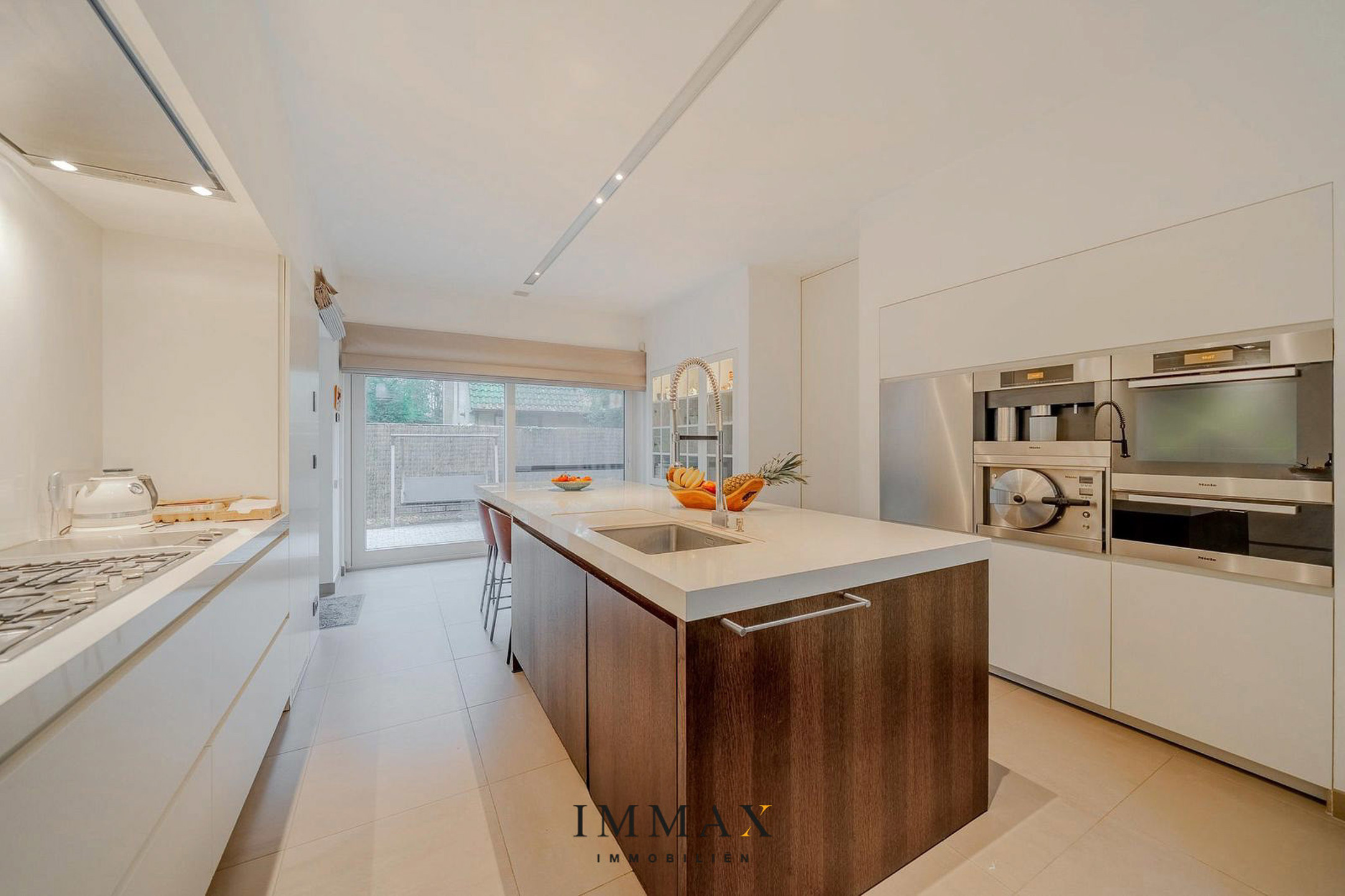 Gelijkvloers: lichtrijke inkomhal met hoge plafonds, ingerichte vestiaire en gastentoilet - ruime woonkamer voorzien van tv corner met gashaard en een ruime eethoek als verlengstuk van de hyper uitgeruste keuken voorzien van Miele toestellen, wijnkoeler, gasfornuis en teppanyaki plaat - grenzend aan de keuken is de koele berging met wasplaats - impressionante extra binnenruimte met plafonds die doorlopen tot aan het dak, ideaal te gebruiken als stijlvolle low dining ruimte, gezellige leeshoek of rustige relaxruimte - aansluitend bevindt zich een luxe binnenzwembad met grote raampartijen die toegang bieden tot de buitenruimte, compleet met een ruime inloopdouche en een aparte sanitaire ruimte, voor ultiem comfort en privacy.